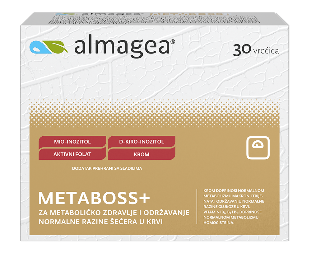 Almagea MetaBoss+ je dodatak prehrani s biljnim ekstraktima, kromom i vlaknima koji podržava metabolizam, regulaciju šećera u krvi i kontrolu tjelesne težine.