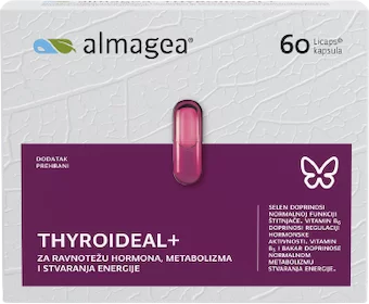 Almagea Thyroideal+ je dodatak prehrani s jodom, selenom, cinkom i L-tirozinom za normalnu funkciju štitnjače i hormonalnu ravnotežu.