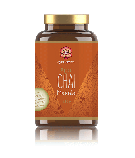 AyuGarden Masala Chai izuzetno je ukusan napitak, s bogatom tradicijom u Indiji i na Istoku. Mješavina je to aromatičnih začina – Đumbir, Korijander, Cimet, Crni Papar, Kardamom i Klinčić, koji se preliju vrelom vodom i vrućim mlijekom (može i biljno). Preporučujemo u Chai dodati i žlicu meda, ili nekog drugog zaslađivača. AyuGarden Masala Chai – Izvrstan…