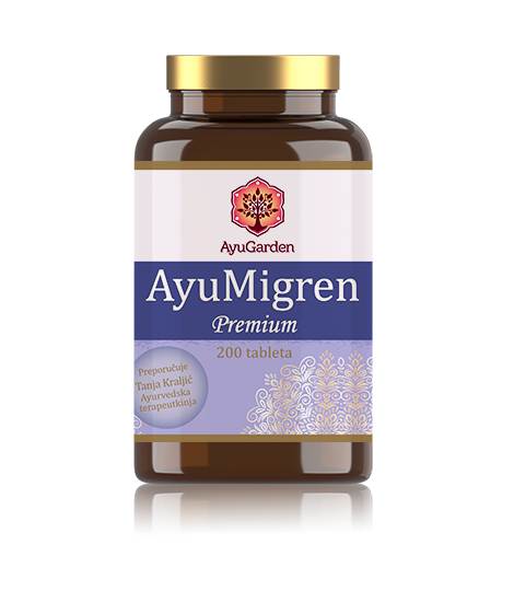 AyuMigren je mješavina pomno probranih ayurvedskih biljaka koje doprinose ublažavanju migrena. AyuMigren svojim analgetičkim i protuupalnim svojstvima (Godanti Bhasma & Dashmoola) djeluje kao spas kod glavobolja i migrena. Također, ublažava preveliku kiselost organizma (Sajjiskshar) koja je vrlo česti uzročnik migrena. AyuMigren smiruje um i djeluje na ublažavanje stresa (Brahmi & Shankhushpi), koji je vrlo često jedan od inicijalnih uzročnika migrena.
