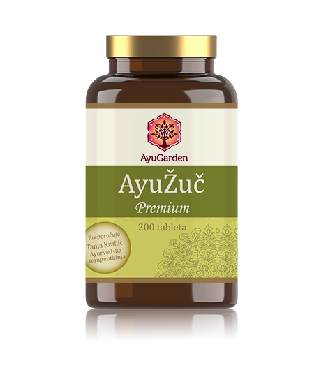 AyuŽuč je mješavina probranih ayurvedskih biljaka za smirivanje problema s žuči. Ova mješavina, svojim protuupalnim i analgetskim svojstvima (Guduchi, Vasa, Shuddha Guggul), doprinosi ublažavanju problema s gihtom, edemima. AyuŽuč pomaže u održavanju zdrave razine mokraćne kiseline. AyuŽuč mješavina korisna je u razgradnji žućnih kamenaca i zdravom protoku žući.