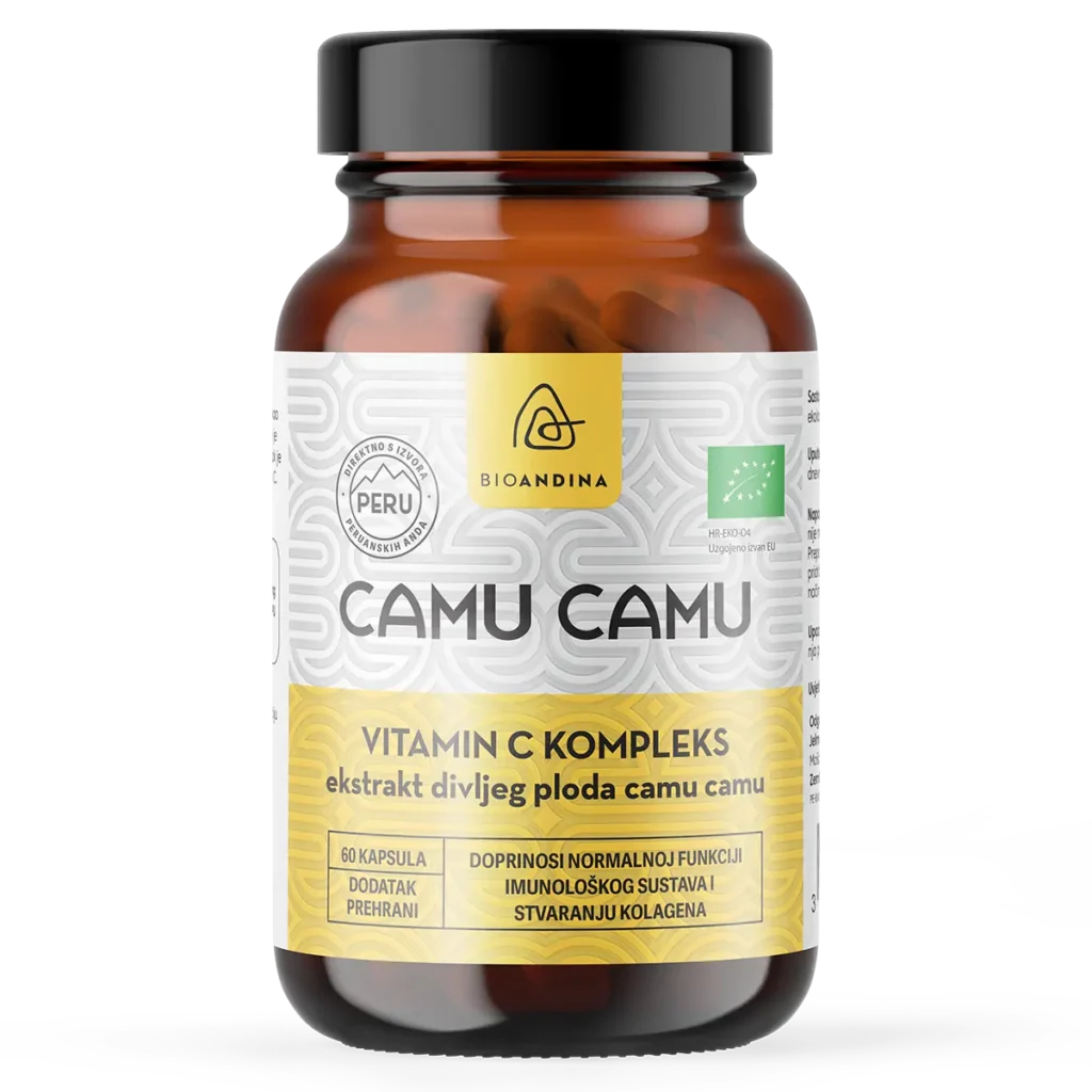 Camu Camu BIO vitamin C kompleks kapsule prirodan je dodatak prehrani dobiven od divljeg ploda voća camu camu koji u svom sastavu ima 100 % prirodan vitamin C.