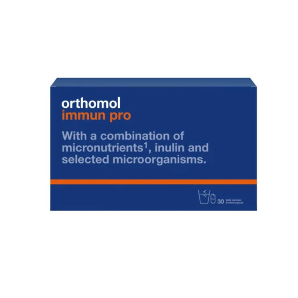 - Orthomol Immun Pro je dodatak prehrani koji sadrži precizno usklađenu kombinaciju mikronutrijenata, inulina i odabranih mikroorganizama. Pogodan je kod liječenja poremećaja crijevne flore i imunološkog sustava povezanog sa crijevima, uvijek kada želudac treba pravu podršku