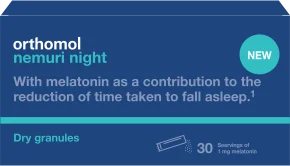 - Orthomol Nemuri night izravni granulat nudi praktičnu i brzu pomoć za spavanje u inovativnom obliku.